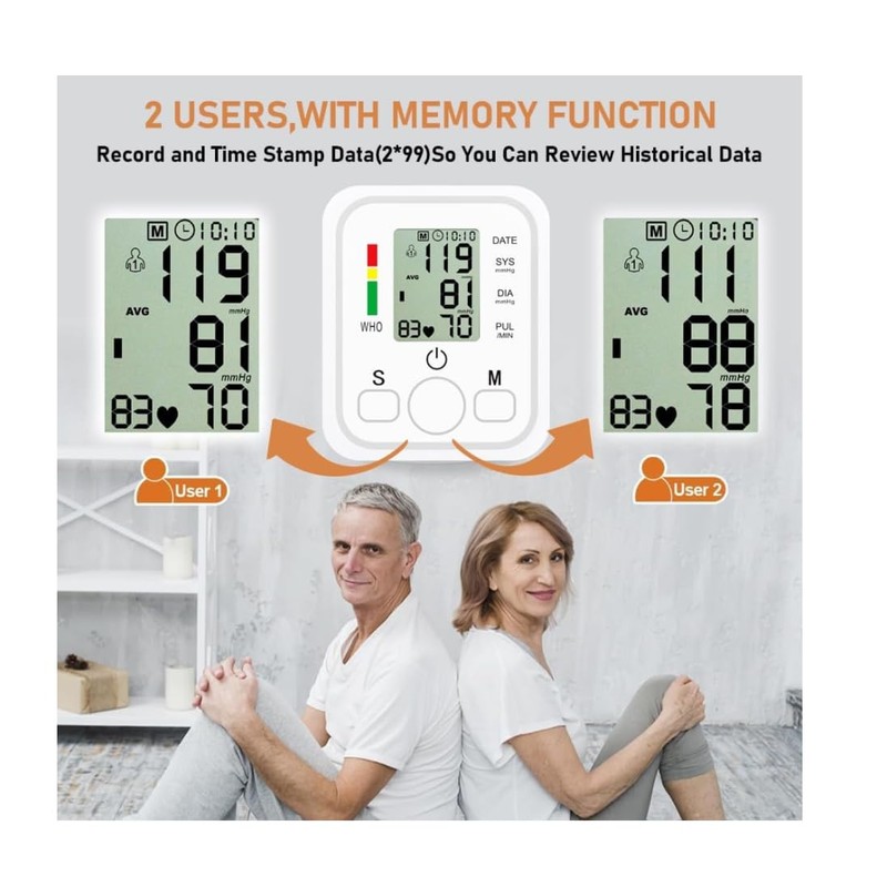 - The blood monitor can store 60 readings for up to 2 people and 1 guest so you can access and track your previous readings with ease