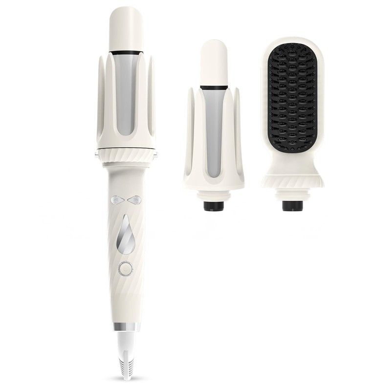 - [All-in-One Styling Kit – Includes Rotating Curling Iron & More] This 3-in-1 hair styling set features a rotating curling iron, 1.25 inch curling wand, and a hair straightener brush, letting you create curls, waves, or sleek straight hair with one easy-to-use kit. The quick-swap design allows you to change attachments in seconds, giving you professional results at home or while traveling.