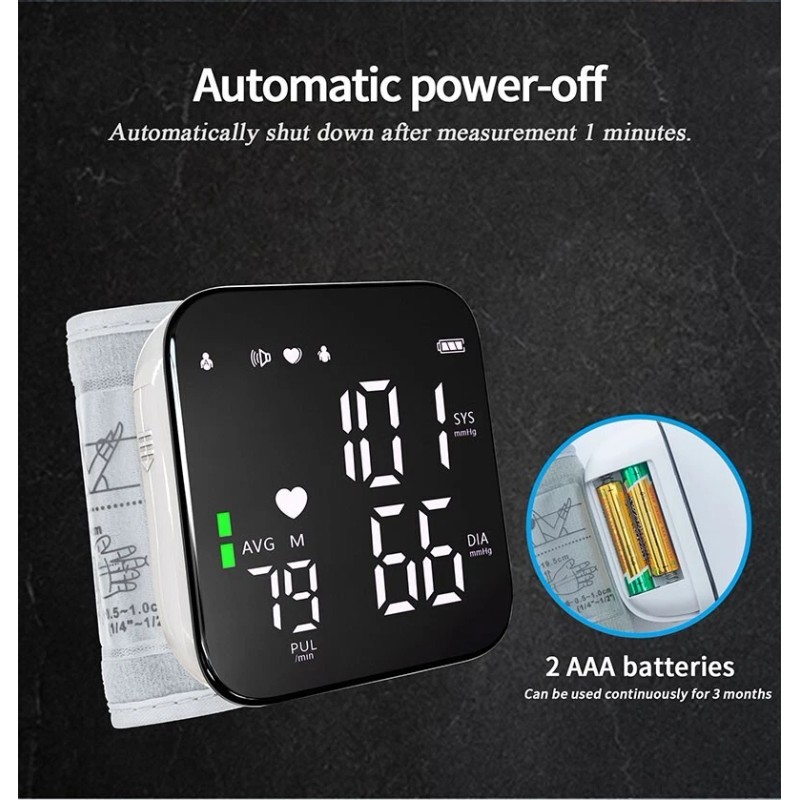 Automatic Digital Wrist Blood Pressure Monitor BP Machine Cuff LED Heart Rate