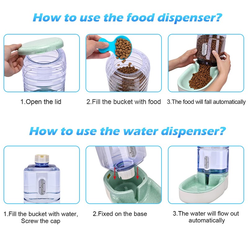 - Dog Cat Feeder and Water Dispenser: automatic cat feeder*1, water dispenser* 1. food feeder and waterer set suitable for small and medium dogs or cats.