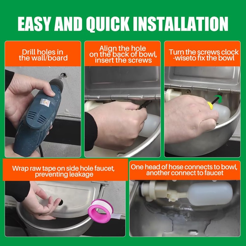 - 【What You Will Got】Package Include: Bowl, 31 inch Pipe, Screws; 1/2 Quick-connect Female Head, 3/4 Quick-connect Male Head, Quality Brush, Raw Tape, Plug for outlet. Quick-connect head can help you to fit different sizes of faucets, Tape help to preventing leakage.