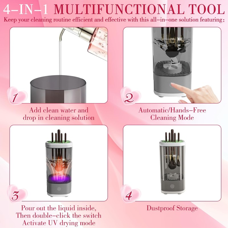 - MAKEUP BRUSH CLEANER:Enjoy the convenience of plug-in power for a reliable cleaning experience. The cleaner accommodates 3-4 brushes simultaneously, speeding up your cleaning routine.