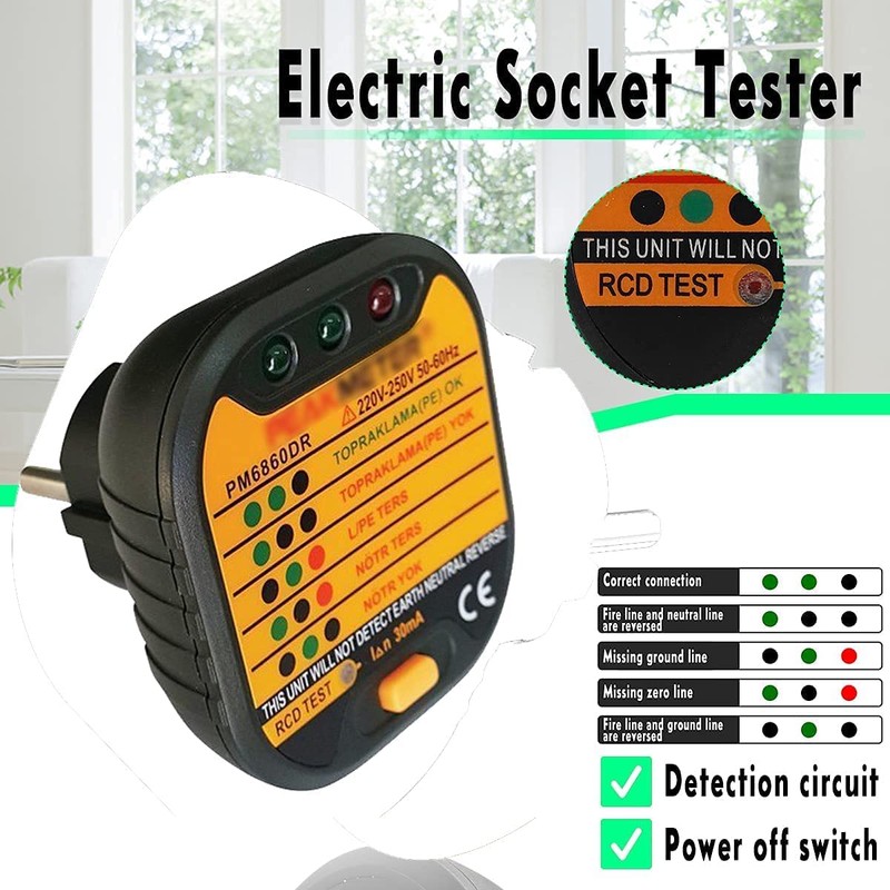 • Indicators Judgement: There are several indicators on the tester, will indicate the socket socket, hlep you judge the socket condition in time, protect your family wire better.