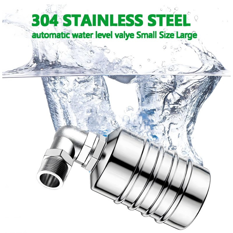 Automatic float valve for water tank pool, 1/2 inch to 3/4 inch water level control valve made of 304 stainless steel, compact automatic water level control for water tanks, pools, solar water tanks
