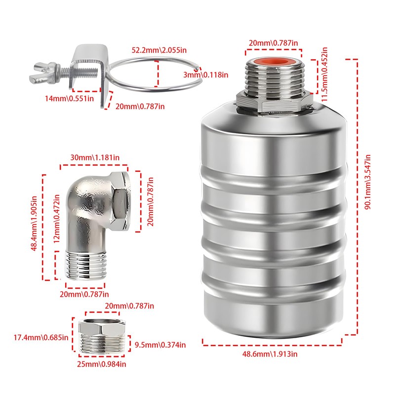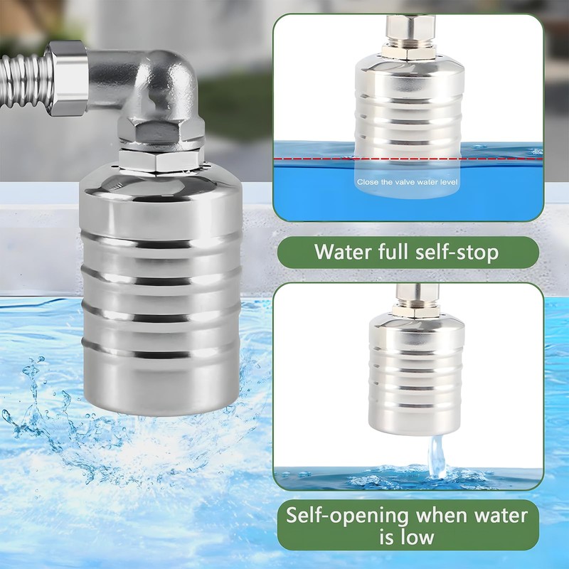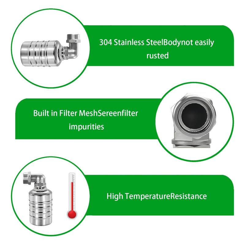 • Durability thanks to 304 stainless steel: the float valve is made of high-quality 304 stainless steel to prevent corrosion and wear. Perfect for use in water tanks and pools to ensure long-term stable performance.