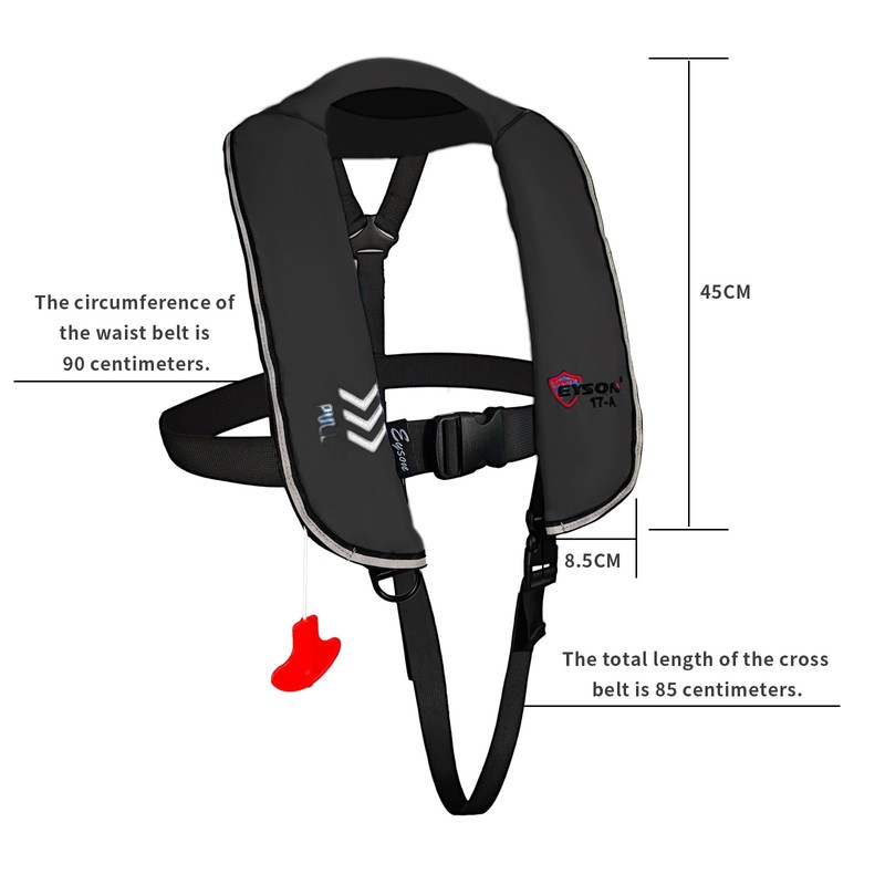 - Comfortable fit: This inflatable life jacket comes with an adjustable waistband and is suitable for teenagers weighing under 170 pounds. Suitable for users with a chest circumference of "30-52". Front buckle closure can be opened with one hand operation.