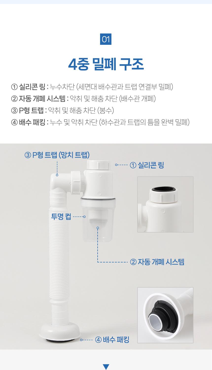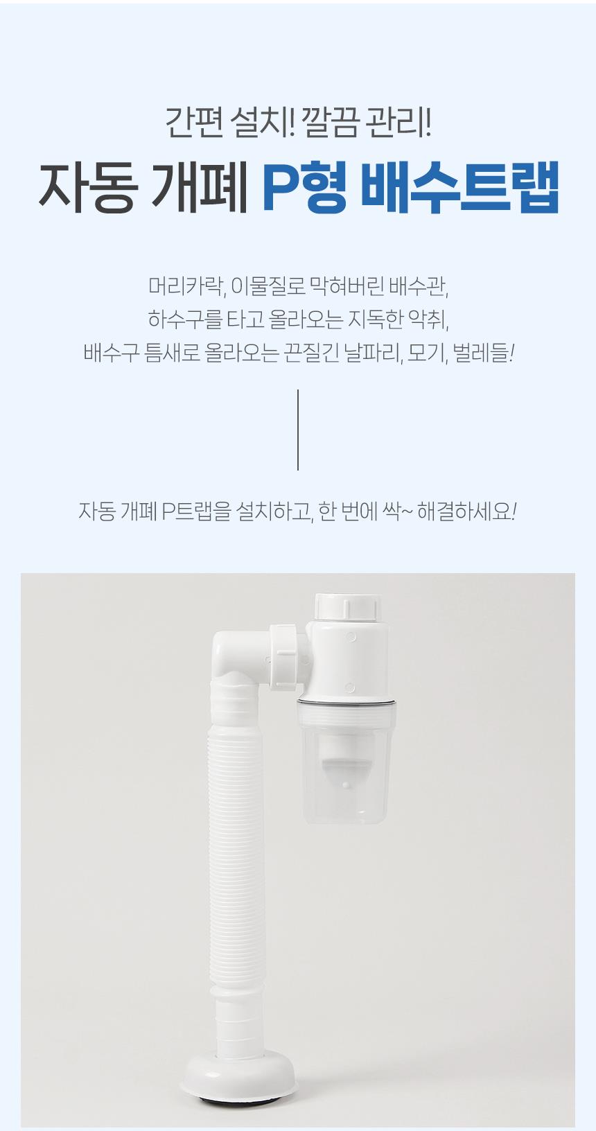 Automatic opening and closing bellows P type white drain trap Toiletries