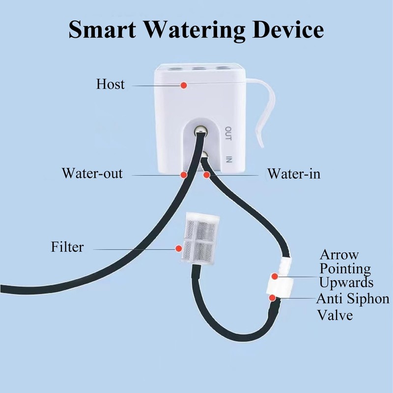 - Enjoy DIY fun installation: The self watering system including: 1* Drip irrigation system, 1* 50feet tube, 15* T head, 15* Dipper, 1* Filter, 1* Anti-siphon, 1* Water line, 1* USD cable, 1* Hook, 1* User manual. You can DIY the exclusive irrigation system for 1-15 pots of greenery according to your needs. Join with your family now!