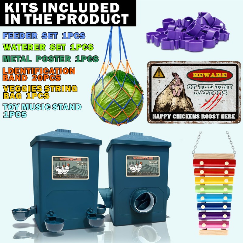 Automatic Port Chicken Feeder and Cup Waterer Set - Chicken Coop Accessories, No Waste Poultry Feeder, 3 Gallon/16 Pounds