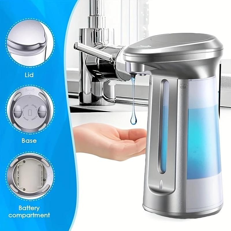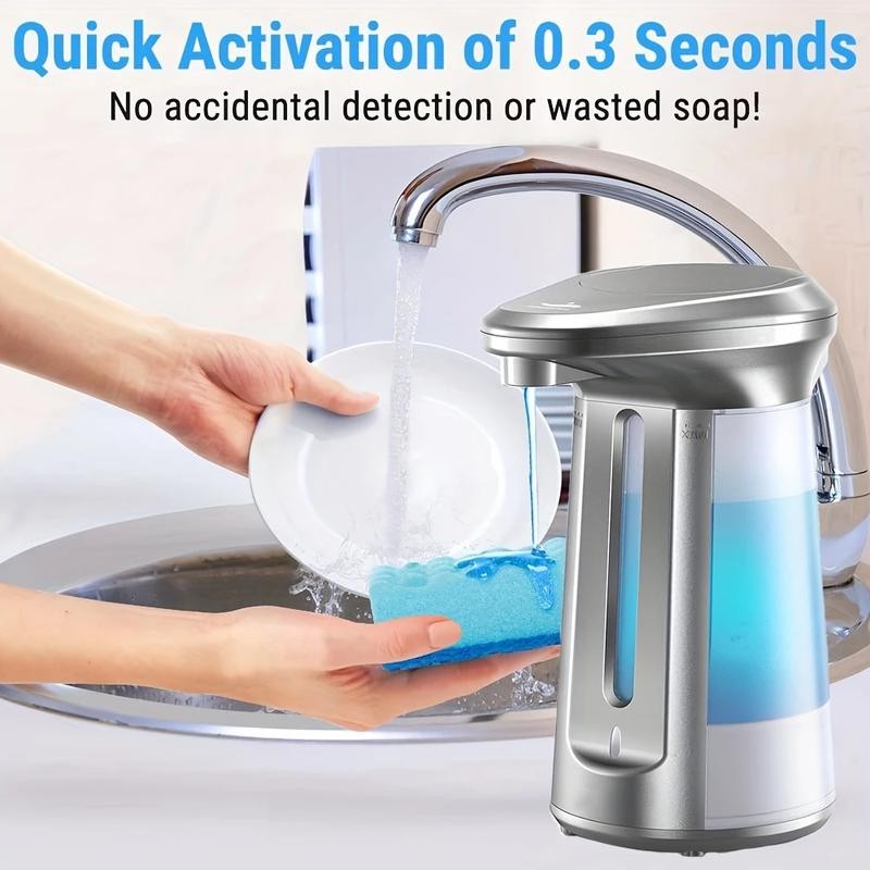 Automatic Soap Dispenser, Battery Operated Touchless Liquid Foam Soap Dispenser(Without Battery), ABS Waterproof Dispenser for Kitchen Bathroom - Color: Silver, Quantity: 2 Counts