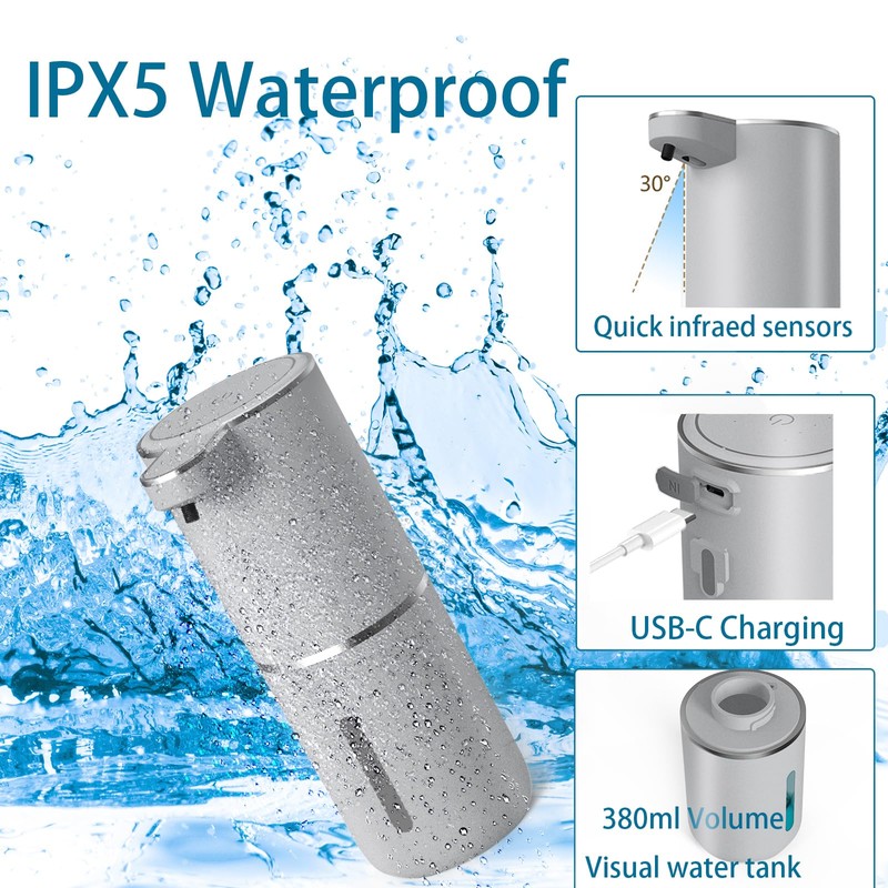 • 【IPX5 Waterproof and Leak-proof Foaming Soap Dispenser】: IPX5 waterproof design can effectively avoid soap or water from corroding the electric soap dispenser, Rubber plug in the USB charging port of the soap dispenser enhances this auto soap dispenser waterproof and Leak-proof performance.