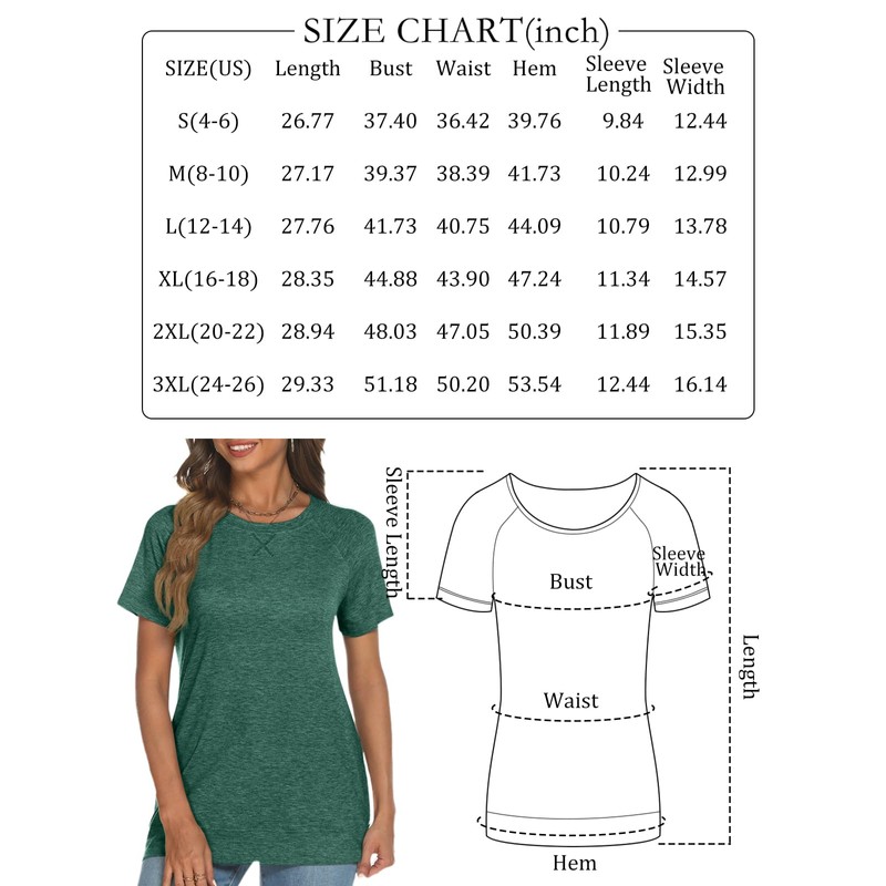 - Material: This short sleeve crewneck tops is made of 12%rayon+82%polyester+6%spandex. Loose, comfortable,soft, lightweight, breathable, light-stretch, wrinkle-free and skin-friendly.