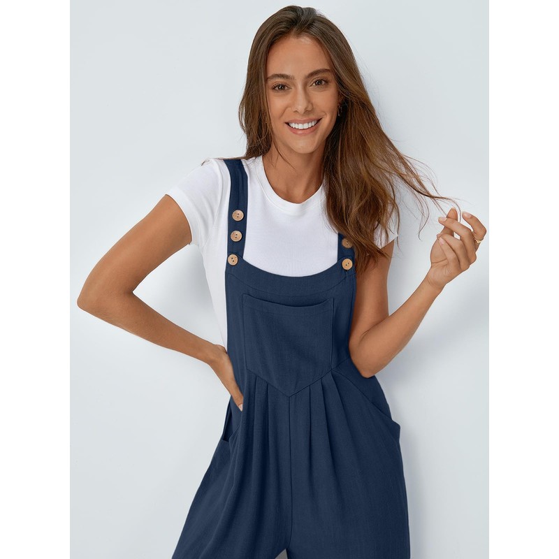 - One Piece Sleeveless Jumpsuits, Square Neck, Wide Leg Pants, Two Side Pockets & Back Pockets, Solid Color, Adjustable Shoulder Strap, Loose Fit Jumpsuits, Casual Style