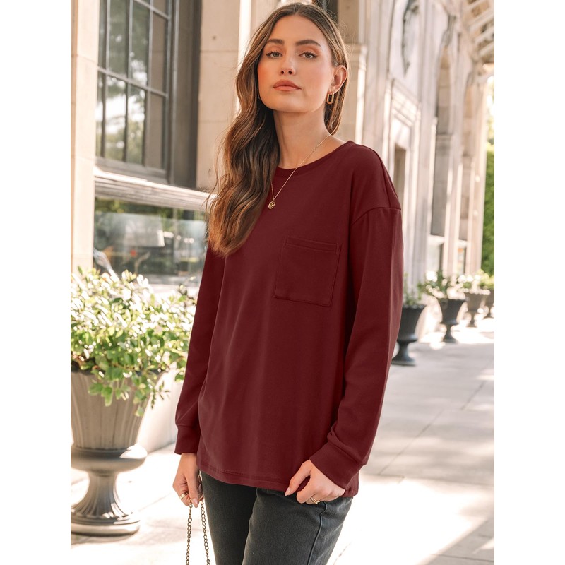 AUTOMET Womens Long Sleeve Tops Loose Fit Fall Cute Thick T Shirts Winter Cruise Outfits Trendy Clothes, Burgundy, XL