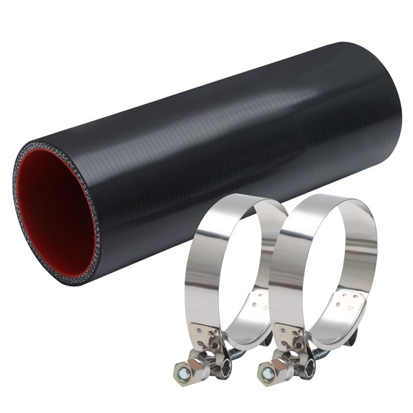 Automotive universal silicone hose, Straight Hose, 2.5" (63 mm) ID, 8" (203 mm) length, 0.18" (4.5 mm) wall thickness, reinforced design withstands up to 80 PSI pressure with 2PCS T-Bolt Clamps