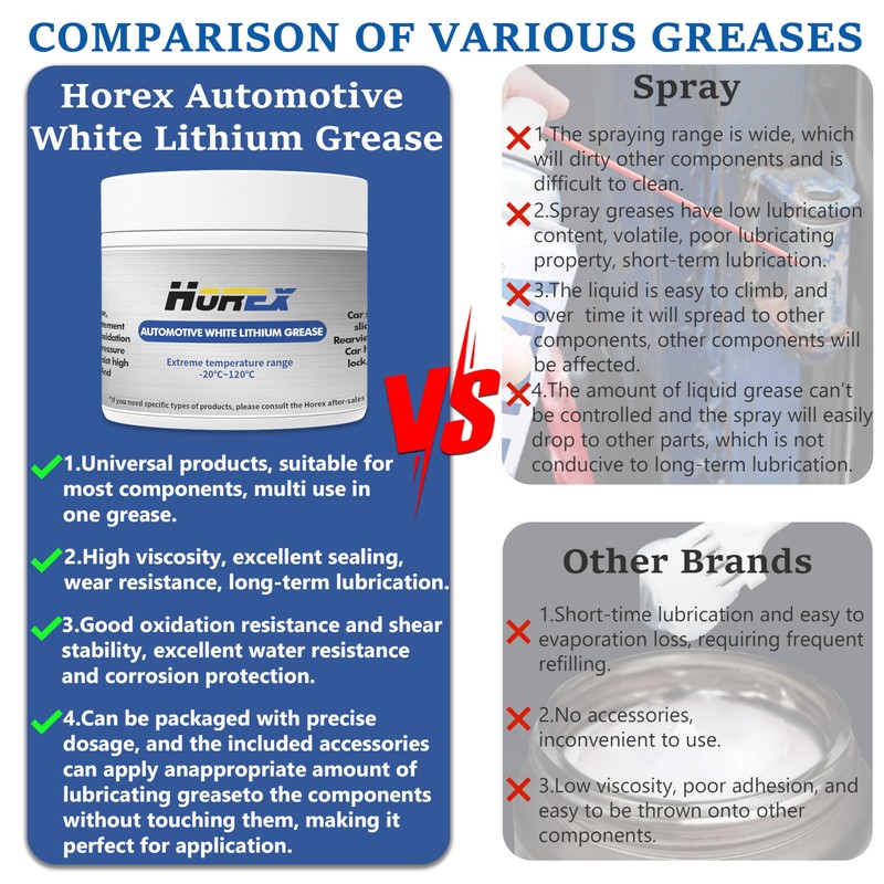 Horex Automotive White Lithium Grease 50ml Multi-Purpose Lubricant Set Car Door Handle Hinge Seat Slide Sunroof Sliding Door Prevent Rust Corrosion Lubrication for Trailer Garage Marine Machine