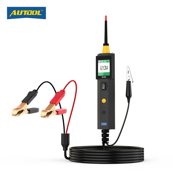 AUTOOL BT250 Electrical circuit tester is suitable for the diagnosis of all 0V to 65V vehicle electrical systems.The display will show AC voltage test, DC voltage test, resistance test, diode test and current overload protection test. The inspection cable is 1.5 meters long and covers the entire engine compartment of the vehicle.The BT250 is also equipped with activation components, signal circuit test, headlight test, multi-language function options and more!