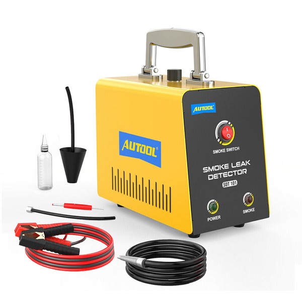 AUTOOL SDT101 Automotive Smoke Leak Detector, it can help you quickly diagnose pipeline leaks, through an external air source can output smoke in a few seconds, built-in regulator can output the standard EVAP system test pressure of 32mbar, even the smallest leak can be detected. Widely used in all automotive piping systems, crankcase systems, oil seal systems, air intake and exhaust systems, cooling systems tank systems, etc.