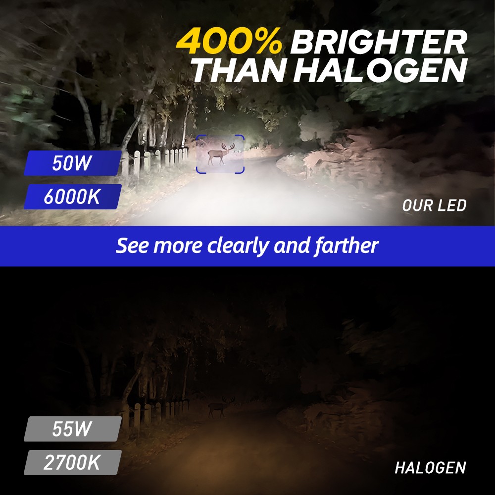 【400% Brighter Than Halogen】AUTOONE 9005/9006 bulb adopts the newest LED chips. Each set provides 40,000lm light output in 6000K white. Make road signs and obstacles clearly visible. Make you can react in time