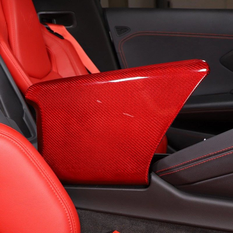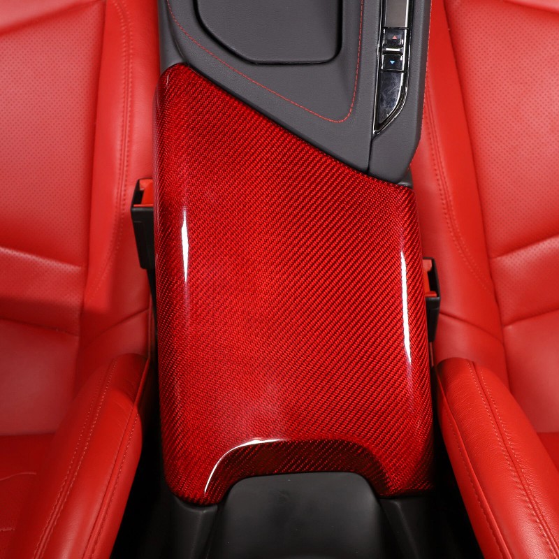 autopart2021 Red Real Carbon Fiber Center Console Armrest Box Cover Trim For Corvette C8 US