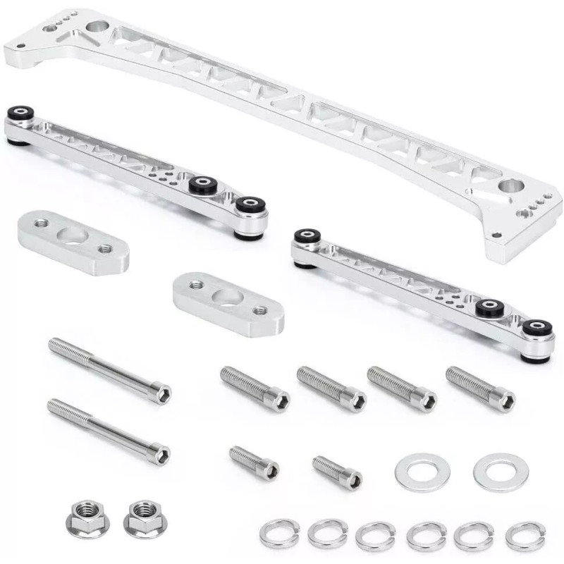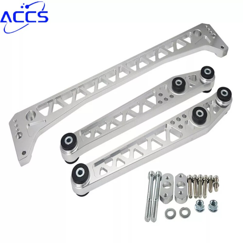 Autoparts-Accs F7 Billet Rear Lower Control Arm+Subframe Brace Silver for Honda Civic EK 96-00