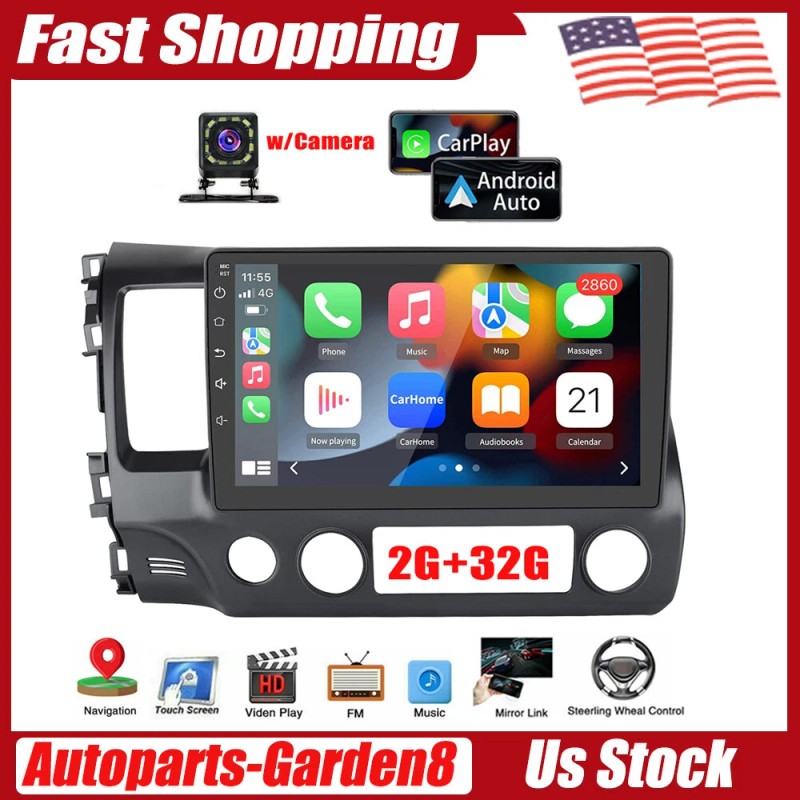 Autoparts-garden8 Android 13 Car Stereo Radio Apple CarPlay GPS WiFi Nav For Honda Civic 2006-2011