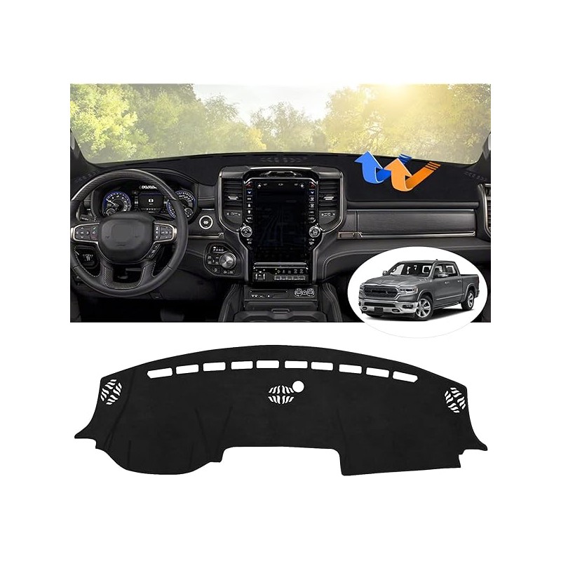 Autorder Dashboard Cover Mat for 2019-2023 2024 2025 Dodge Ram 1500 2500 3500 Accessories Dash Cover Flannel Dash Mat Sunshade Glare UV Rays Protector Black