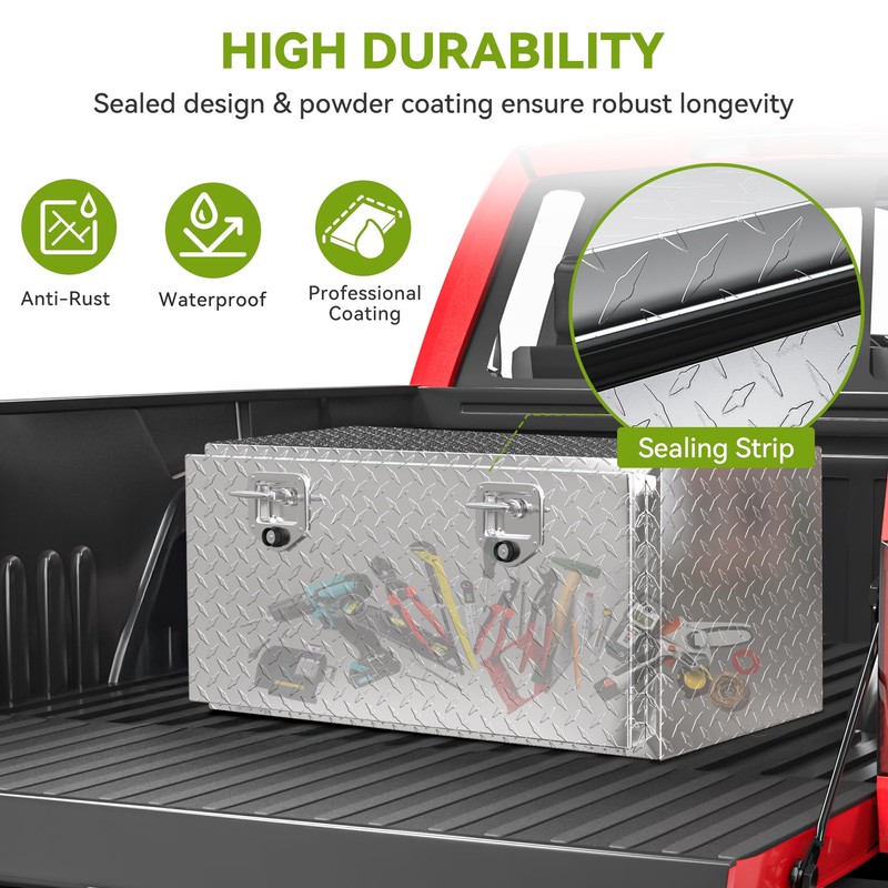 - High-Density Aluminum Construction: Crafted from sturdy aluminum with a non-slip surface, this underbody toolbox resists oxidation, maintaining its strength and appearance in tough conditions