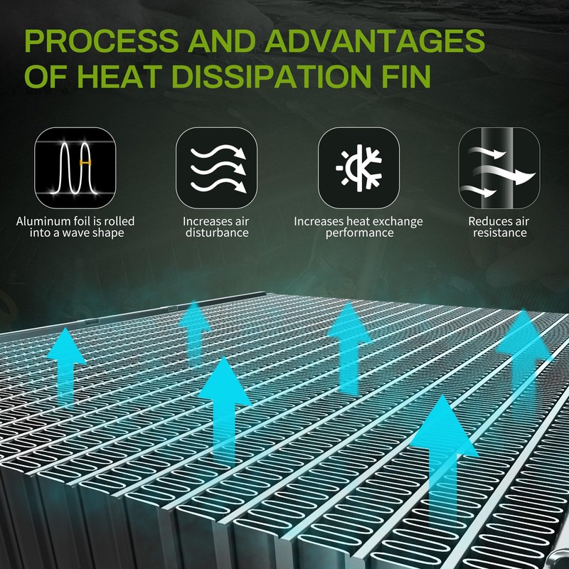 - 3.Maximize cooling efficiency: Built with high-density multi-louvered fins to improve cooling efficiency and ensure durability in extreme cold weather. The corrugated aluminum fins and tubes are connected by brazing, providing unparalleled performance and durability