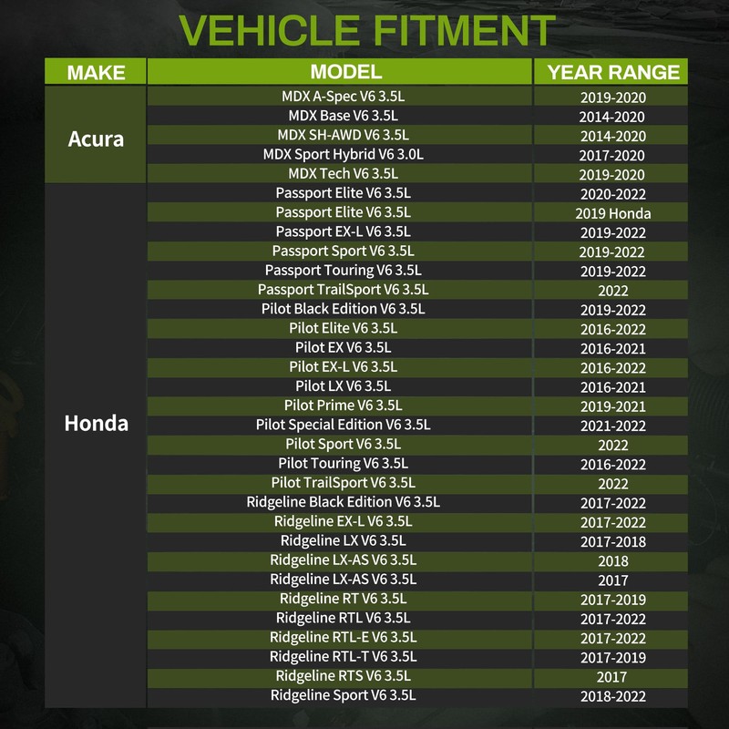 - 1.Compatibility: The AC Condenser is compatible with - 2019 2020 2021 2022 Passport 2016 2017 2018-2022 Pilot 2017-2022 Ridgeline 2014-2020 MDX 3.5L V6. Please confirm the compatibility with your vehicle before ordering. Thank you