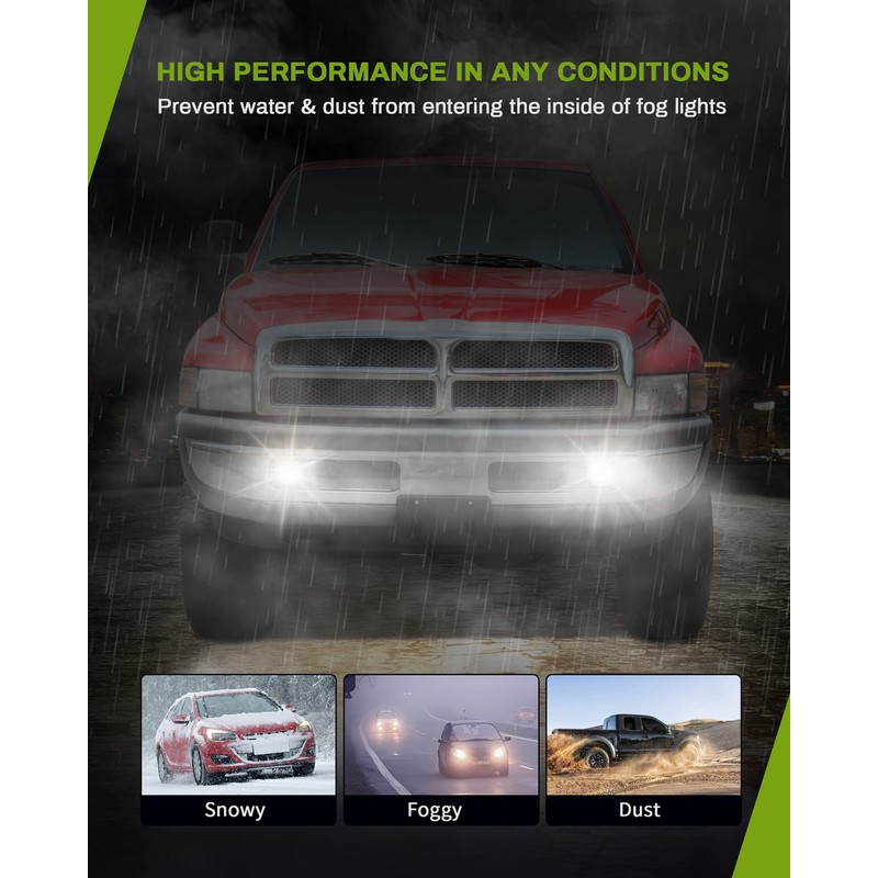 - Bright 6000K LEDs: the LED fog lights assemblies provide a brighter and whiter light output, which dramatically enhances the visibility and safety when you drive in low light or inclement weather