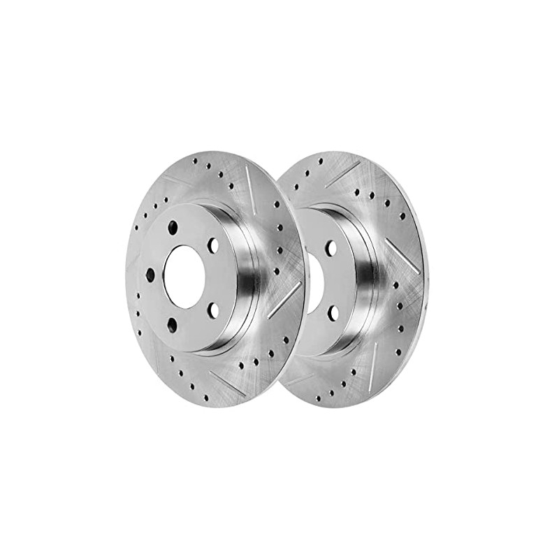 AutoShack Rear Drilled Slotted Brake Kit Rotors Silver and Ceramic Pads Pair of 2 Driver and Passenger Side Replacement for Dodge Grand Caravan Journey Chrysler Town & Country Ram C/V V6 FWD BRKPKG927