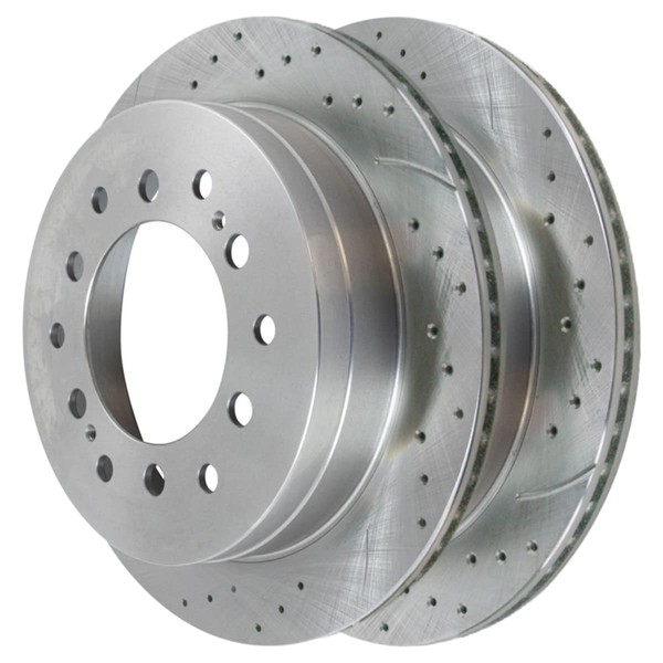 AutoShack Rear Drilled Slotted Brake Rotors Silver Pair of 2 Driver and Passenger Side Replacement for Toyota Sequoia 2003-2009 4Runner 2007-2009 FJ Cruiser 2003-2009 Lexus GX470 4WD RWD PR41296DSZPR