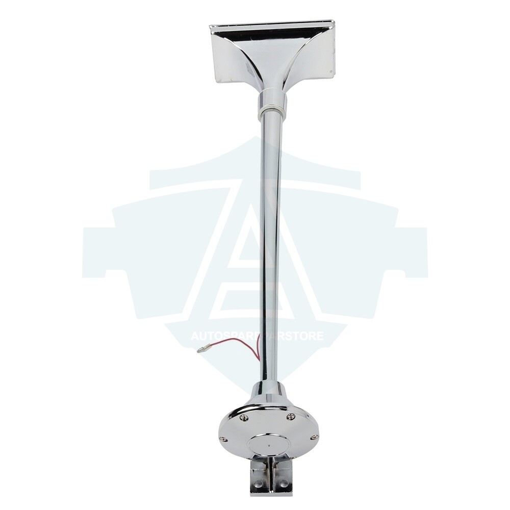 Product Information: This chrome look trumpet produces a loud powerful sound. Constructed of metal to ensure maximum strength and durability with a front pedestal that eliminates vibration at high speeds or on rough roads. Horn comes with a 12V solenoid, rectangle weather protection cover and mounting hardware. An on-board air system is required for operation. Ideal for semi-trucks, and all vehicles with a 12V system.