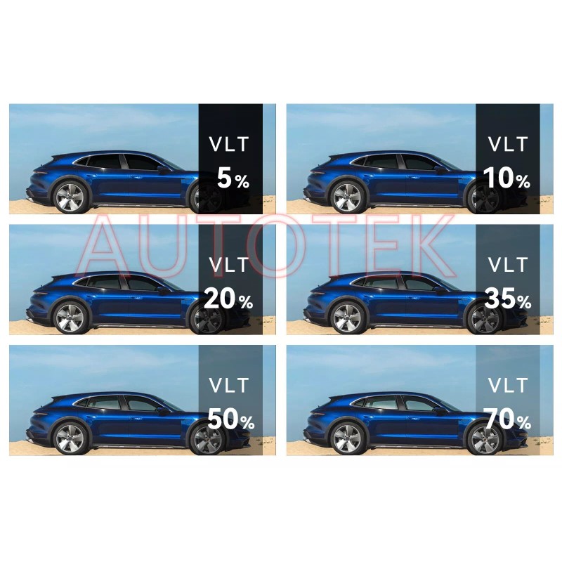 - Visible Light Transmission: 05% 10% 15% 20% 25% 35% 45% 55% 70%
