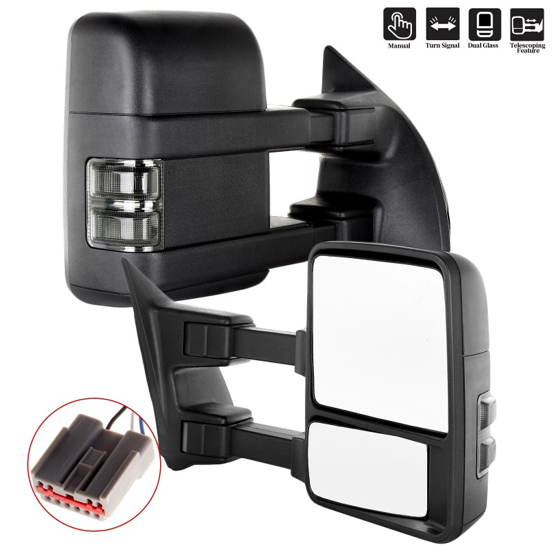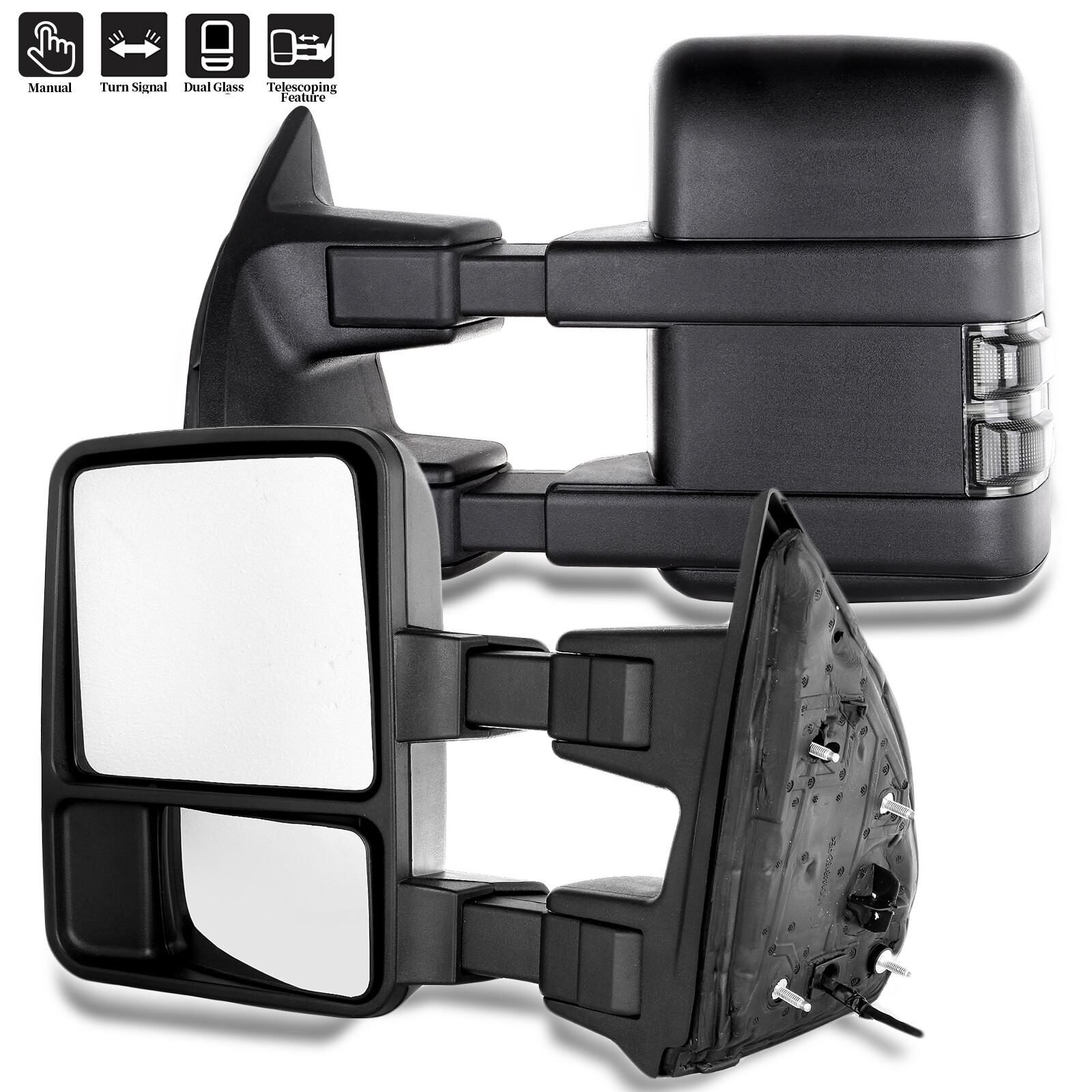 Comes as a PAIR Fits both LH (Driver Side) & RH (Passenger Side) Manually telescoping mirrors Manual with Led Smoke Turn Signal Lights Makes a great upgrade to any truck that will be towing trailers These mirrors are a direct bolt on replacement to your original mirrors.