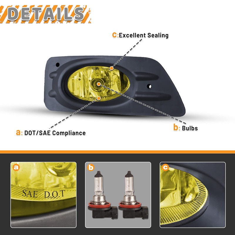 AUTOWIKI Fog Lights For 2006 2007 Honda Accord 4 Door Sedan dr Lamps Assemblies Driver Passenger Replacement With Wiring Kits Amber Yellow