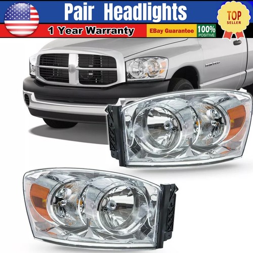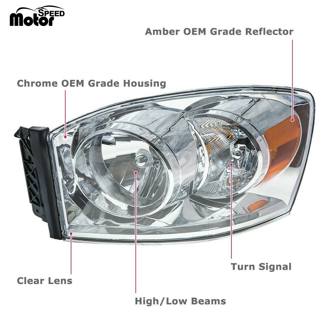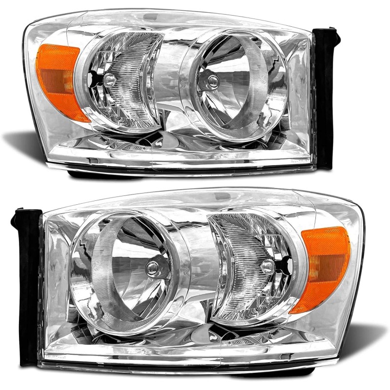 AUTOWIKI For 2006-2008 Dodge Ram 1500 2006-2009 Ram 2500 3500 Headlights Chrome Lamp Pair
