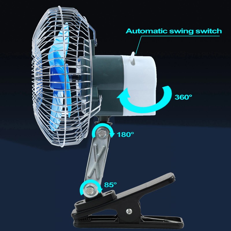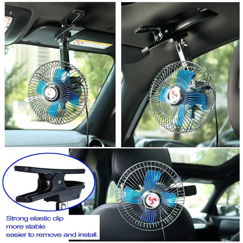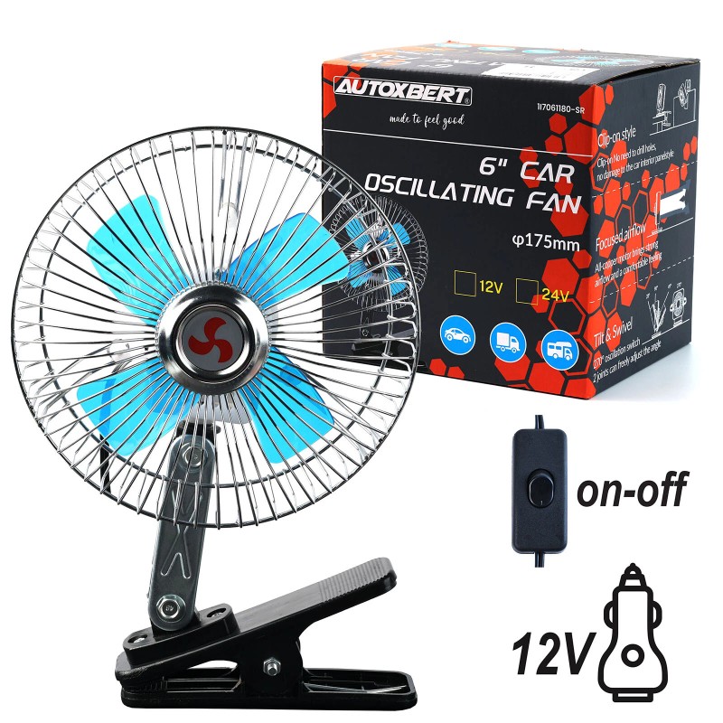 Autoxbert 12V Summer Portable 360Rotation Car Cooling Oscillating Fan Travel Clip On Auto