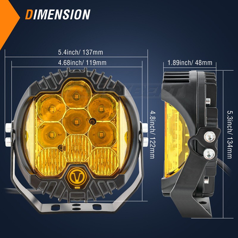 【Reliable Lighting Effect】5 inch 50W led offroad lights use upgraded led chips with high lumen and high brightness. Each light has 4pcs 3535 LED chips for spot beam and 2pcs 3535 LED chips for flood beam, emit 5000 lumens super bright lighting and 6500K amber beam to offer wider and longer illumination distance.