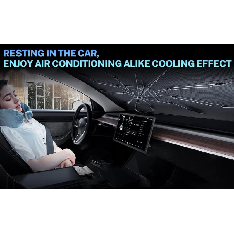 AUTOXBERT Car Windshield Umbrella Sunshade Heat Block Sun Shade Front Window Cover Mesh &