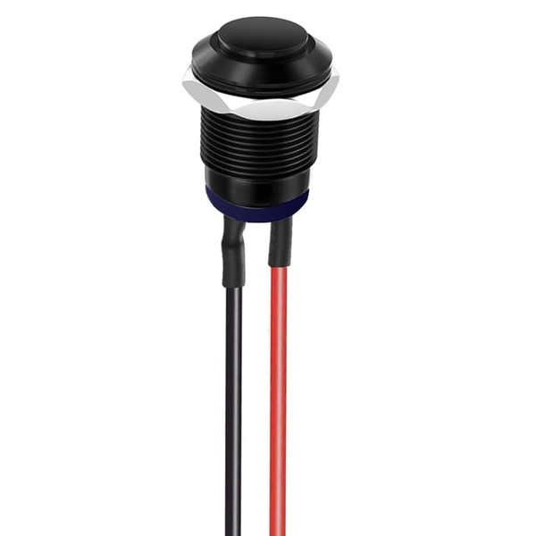 AUTOZOCO Wired Push Button Switch Momentary Push Button 30cm 2 Way Cable 12mm Mounting Hole IP65 ON/OFF 2A 250V AC Black