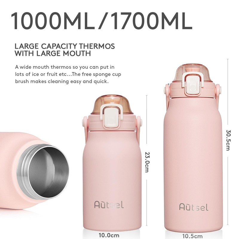 - DOUBLE WALL VACUUM INSULATION: Autsel insulated water bottle can keep the liquid cold for 24 hours and keep it hot for 12 hours. It's a great insulator for summer and winter.
