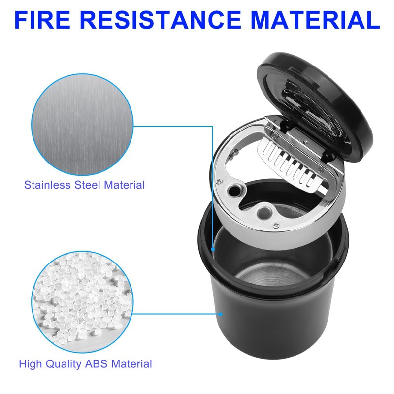 LED Night Light: Experience clear visibility even in dimly lit environments with the built-in LED night light. The blue LED indicator automatically lights up when the lid is opened, providing visibility inside the ashtray. Power-saving feature turns off the light when closed.