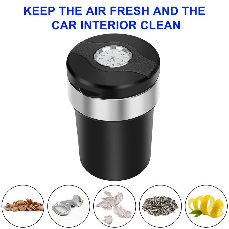 Versatile Convenience: Keep track of time, dispose of cigarette ashes neatly, and tidy up your car with ease. This ashtray is also perfect for storing small trash items like peels or paper scraps. Catering to your diverse needs, it fits most car cup holders.
