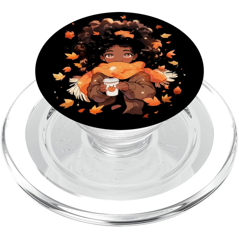 Autumn Afro Child Girl Pumpkin Spice Latte African American Children PopSockets PopGrip for MagSafe