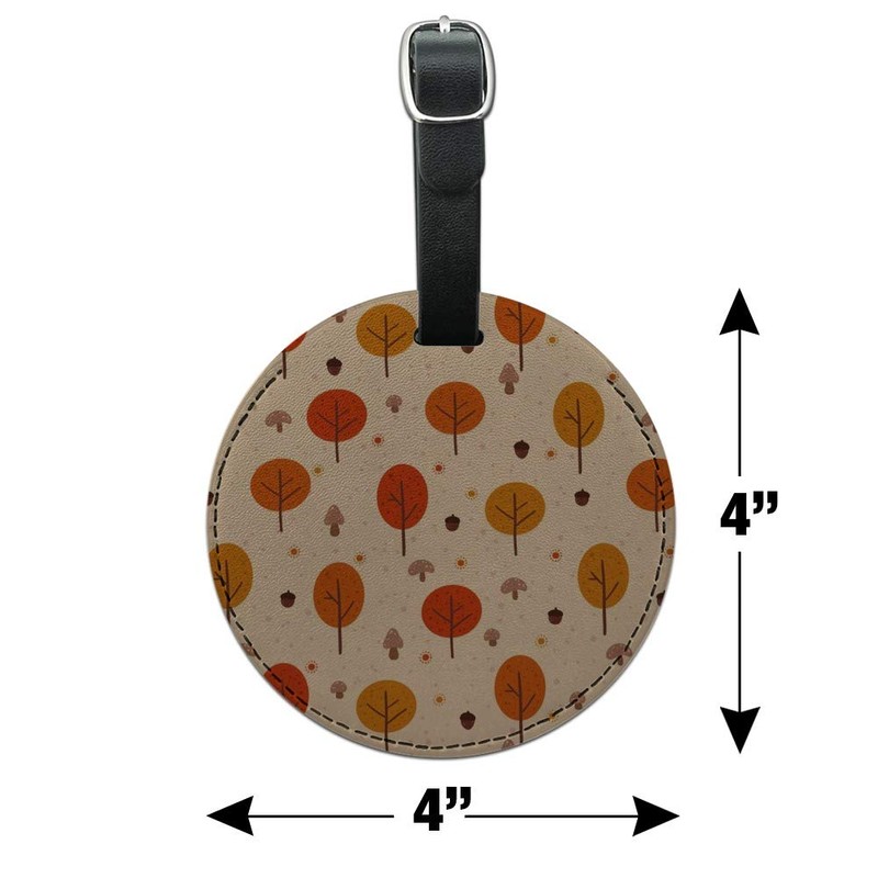 Autumn Fall Trees Pattern Round Leather Luggage Card Suitcase Carry-On ID Tag