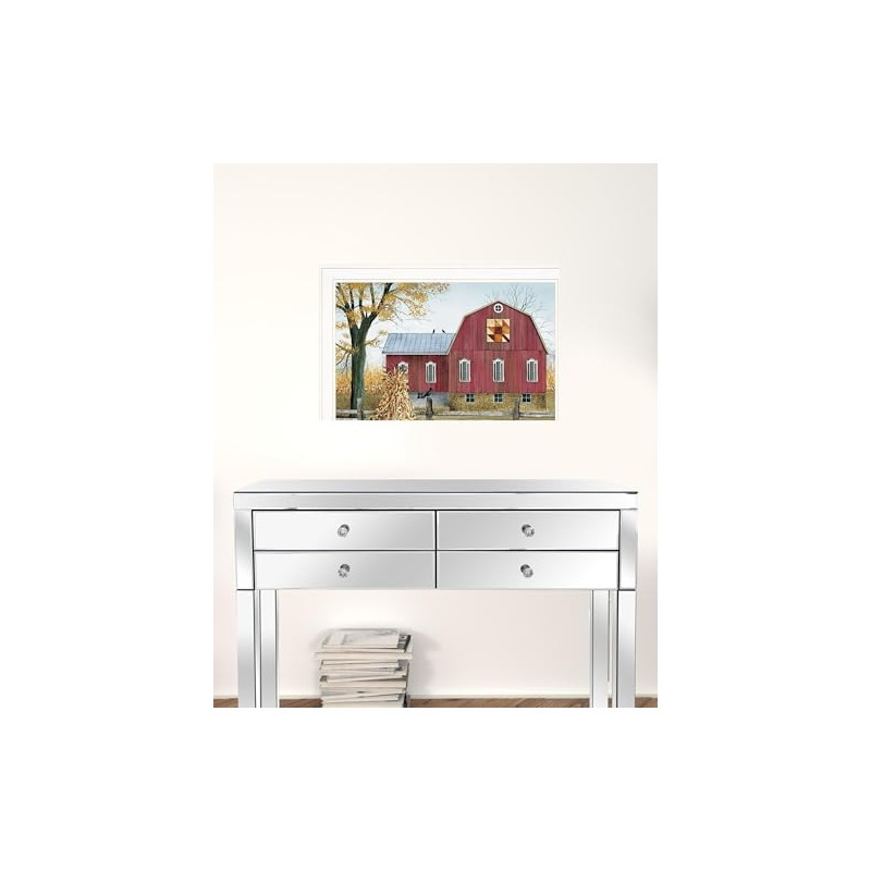 Autumn Leaf Quilt Block Barn 1 White Framed Print Wall Art