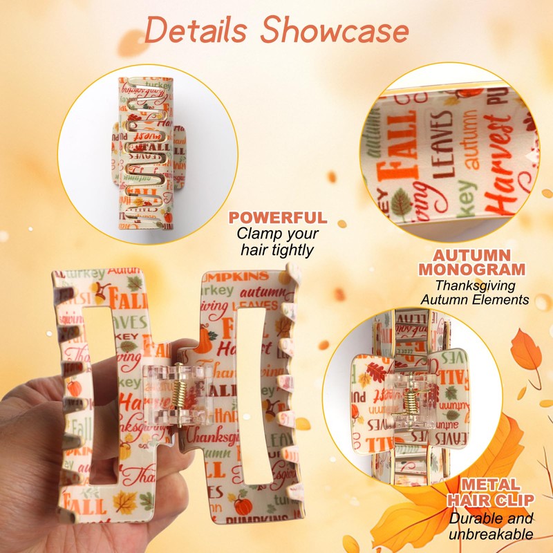 - Autumn Maple Leaf Hiar Clip Thanksgiving Turkey Hair Claw Clip Strong Hold Hair Barrette Clips for Women Fall Hair Accessories for Thick and Thin