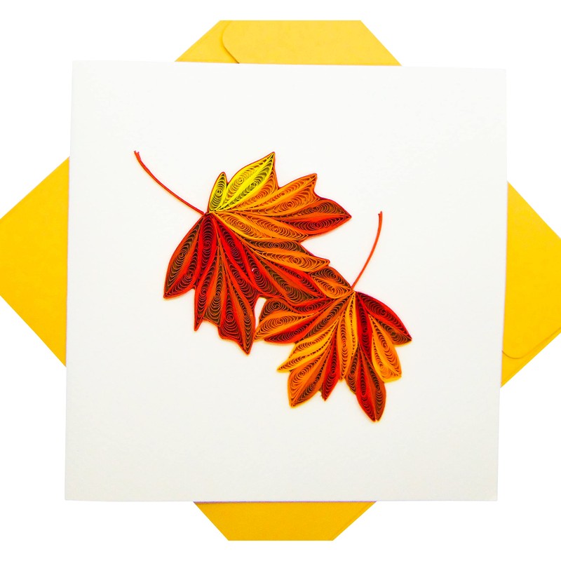 Autumn Maple Leaf Quilling Greeting Card - Unique Dedicated Handmade/Heartmade Art. Design Greeting Card for all occasion by GREENHANDSHAKE